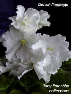 Крупная, 6-7 см., кипенно-белая полумахровая звезда с волнистыми краями. Листья ярко-зеленые, округлые, стеганые.Высокие сильные цветоносы, аккуратная розетка. Стандартная. /Полешко Т./